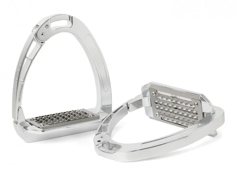 New premium model of the patented, laterally opening Arena stirrups, completely made of certified high-grade anodized aluminium and fitted with a stainless steel tread.