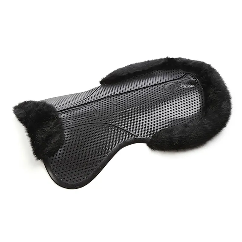 This beautiful pad offers the best of both worlds. The therapeutic shock absorption of our shaped gel pad with added security of the non-slip properties of the gel on both sides. This allows the saddle to adhere to the top side and the bottom side to the numnah/square or the horses back if used on its own. The saddle is then cradled in a luxurious lambswool front & back rolled edge for the ultimate in ‘good-looks’. The whole pad can be machine washed on 30 degrees.