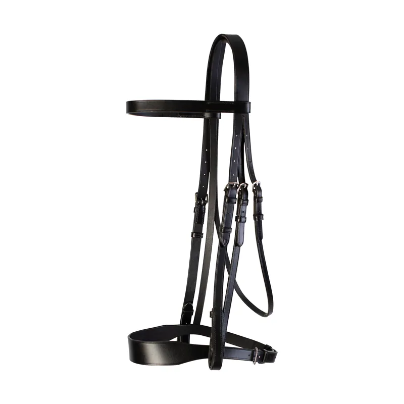 Our Hunt Bridle is made to a traditional design with a broad noseband. The bridle comes with 2 browbands for added versatility, a plain and a plaited version