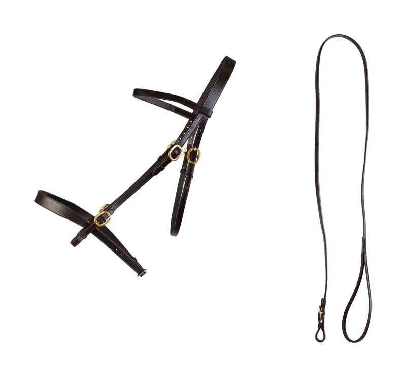 Stunning in hand bridle with brass fittings features a lightly raised browband for classic showring style.