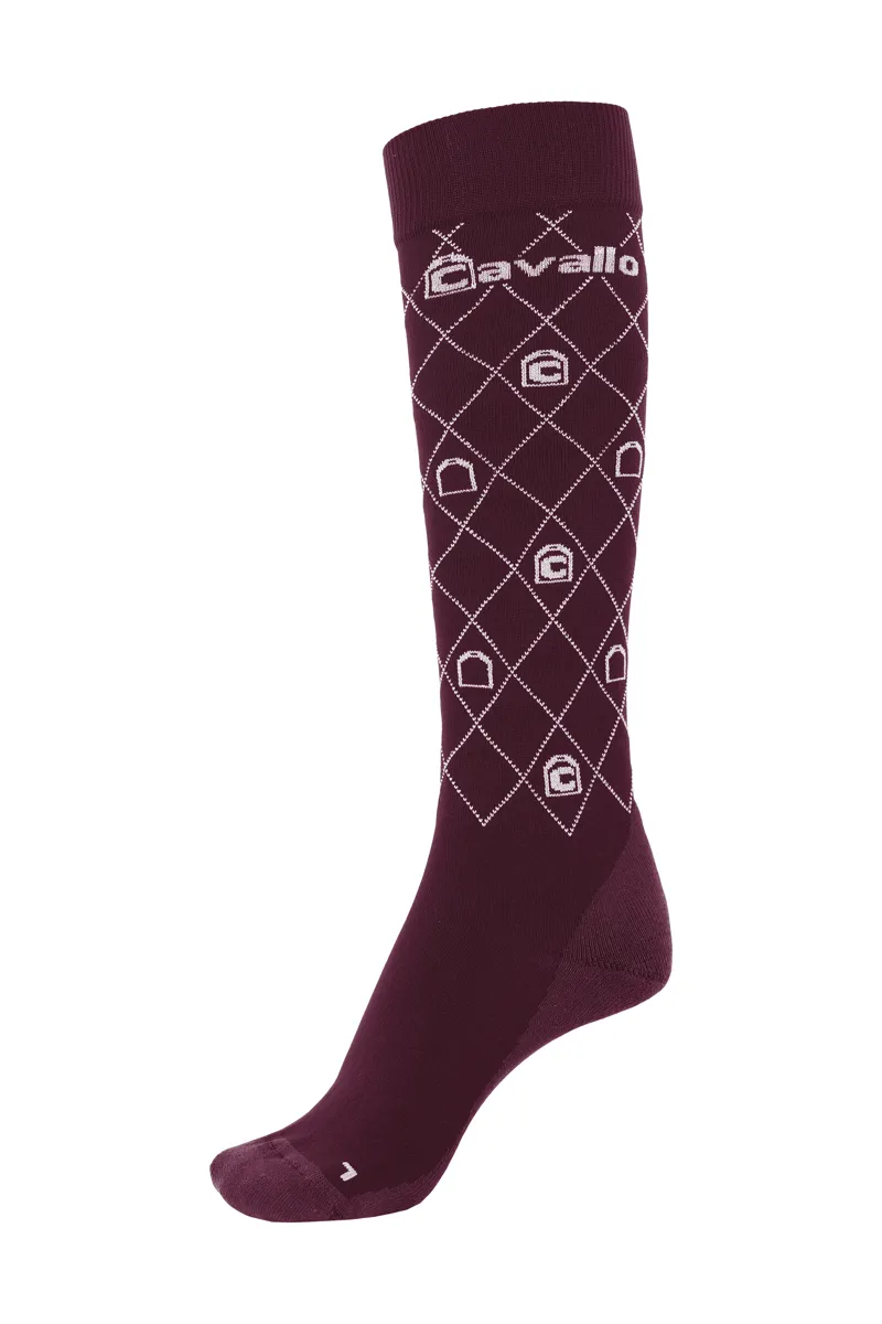 - Allover diamond design with stirrup and Cavallo logo in shiny silver yarn in the shaft.