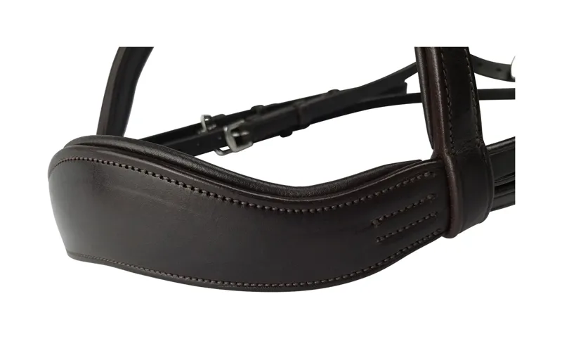 A traditional show bridle with a modern twist – Using our finest EcoLeather, the Show Comfort bridle boasts a super soft padded headpiece with a slight anatomic shape with ear cutaway to alleviate the pressure on the lower ear. The plain browband is also padded and extra soft for comfort. The plain noseband has soft padding with a channel to allow the flash to be removed.