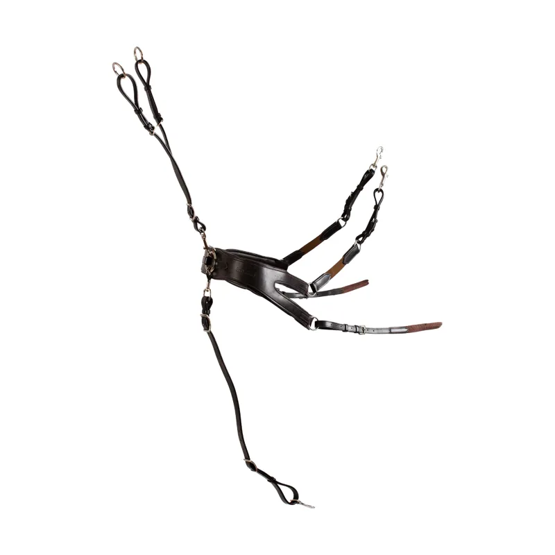 The beautiful Freedom Breastplate prevents the saddle slipping backwards in the take-off phase. It avoids pressure points and gives the horse maximum freedom of the shoulders. Comes with a martingale attachment.