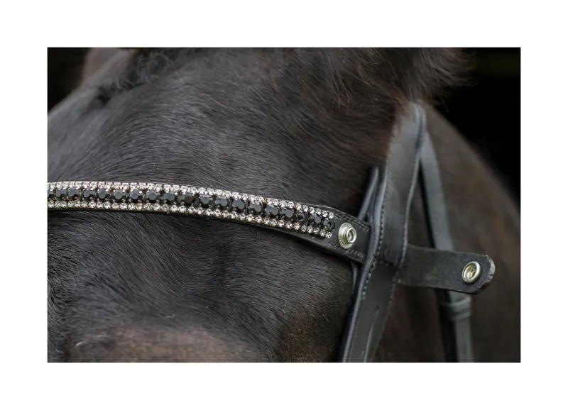 A beautiful browband with black and silver diamante crystals. With ‘e’clasp browbands designed for use with freedom bridles / headpiece but can be used with most conventional bridles.