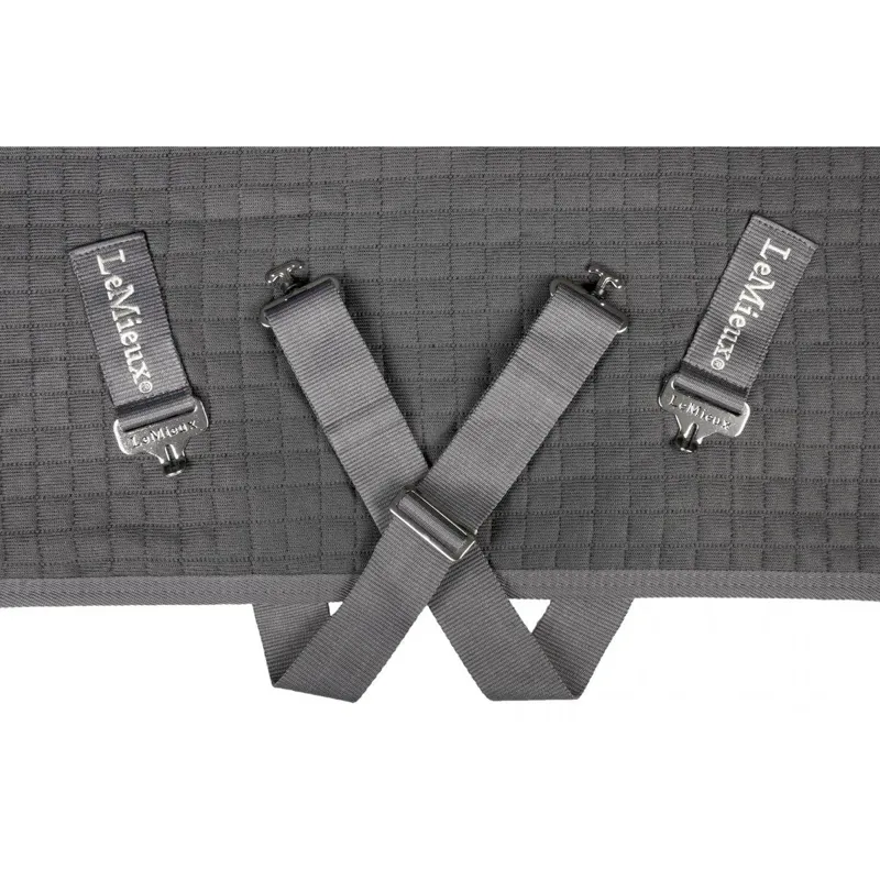 The multi-layered structure of the LeMieux Arika Clima-Tek rug has a unique wool and acrylic blend, making it perfect for moisture management. This structure controls muscle temperature during the cooling process, allowing for effective moisture wicking without cooling muscles too quickly making this rug perfect on chillier days