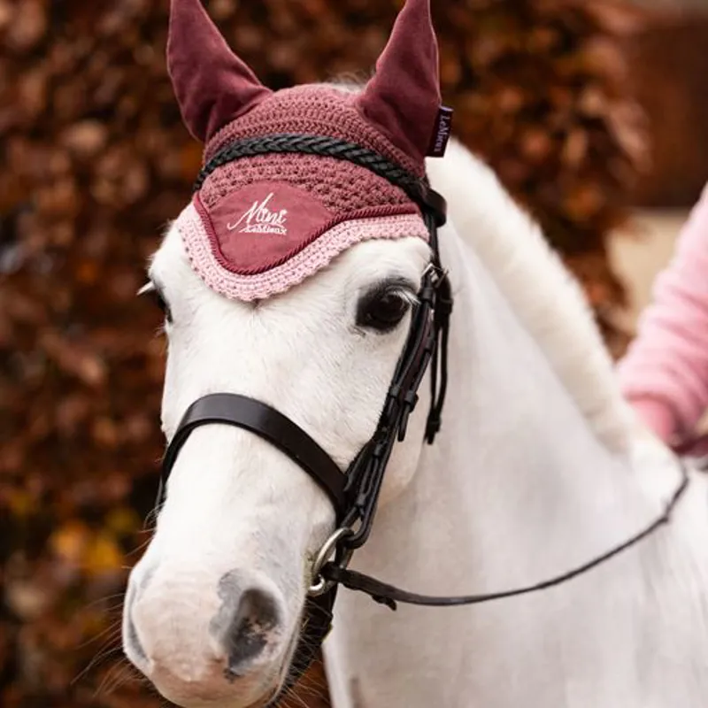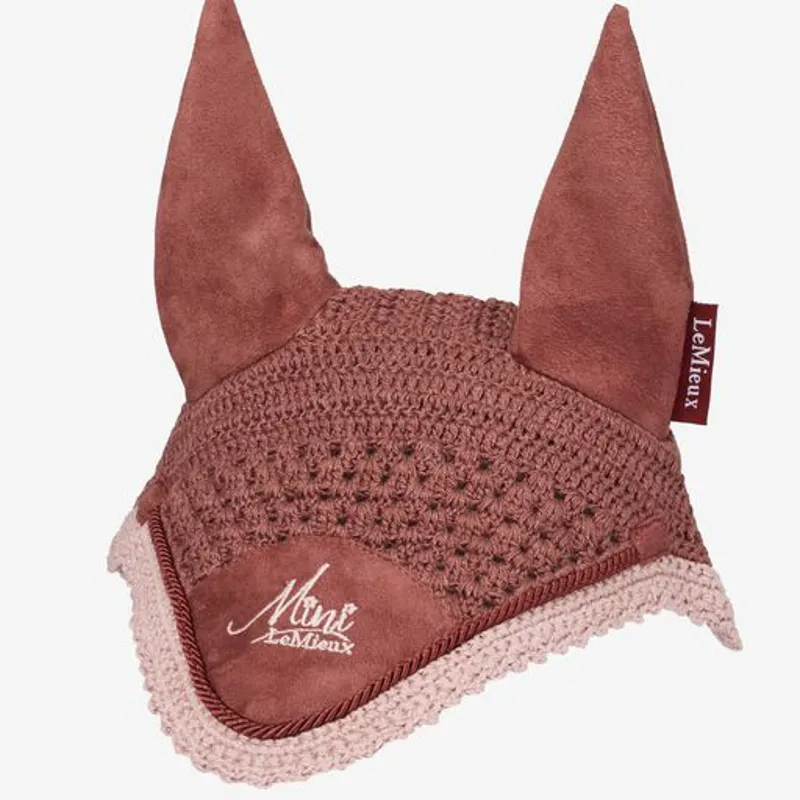 At last a premium designer collection for Kids! Mini LeMieux is intended to appeal to the under twelves with an eye for style. Designed particularly for 11.2hh to 13hh ponies, the Mini LeMieux Fly Hood is hand made from two styles of close-knit crochet with comfortable high-density fabric ears that soften sound. Suede embroidered detailing and colour matched braid complete the range