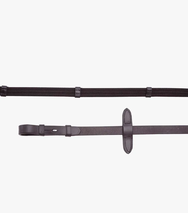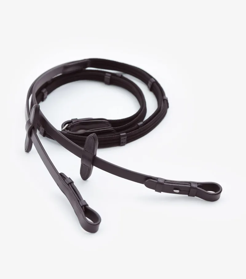 At regular intervals along the webbing we have incorporated leather ‘grips’ which the rider can use to gain a more secure contact if desired. Webbed reins are highly flexible and provide a good amount of grip without compromising on style.