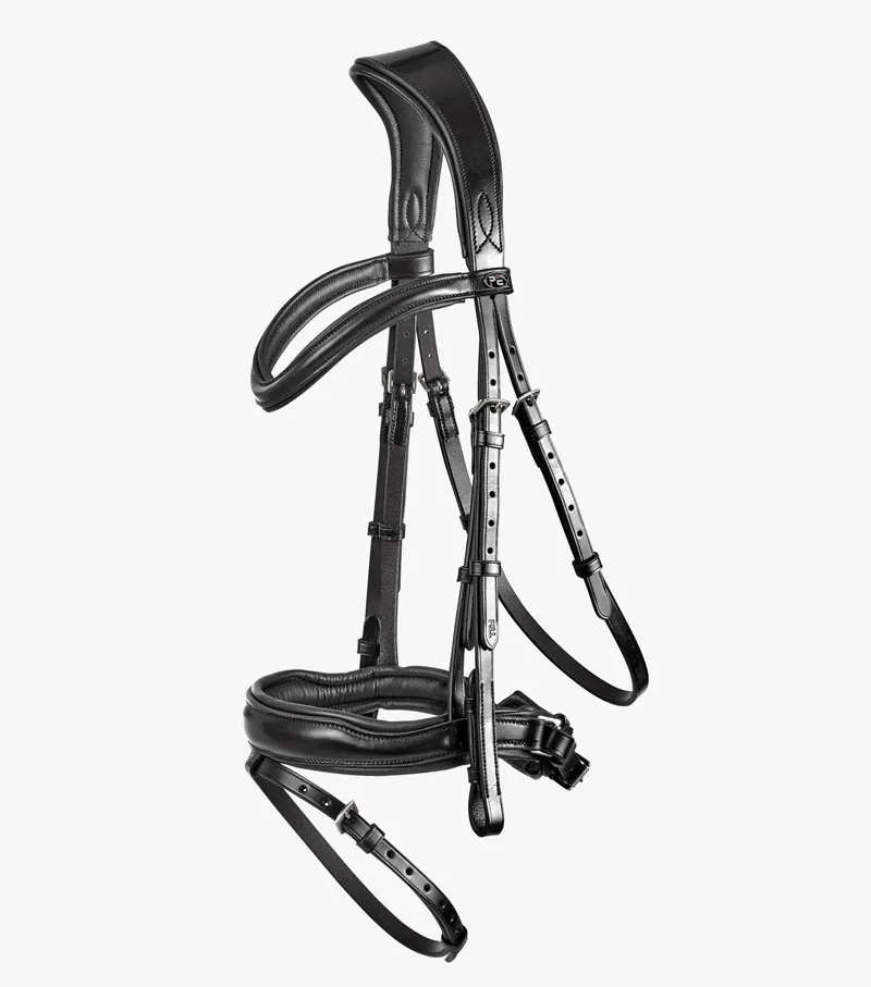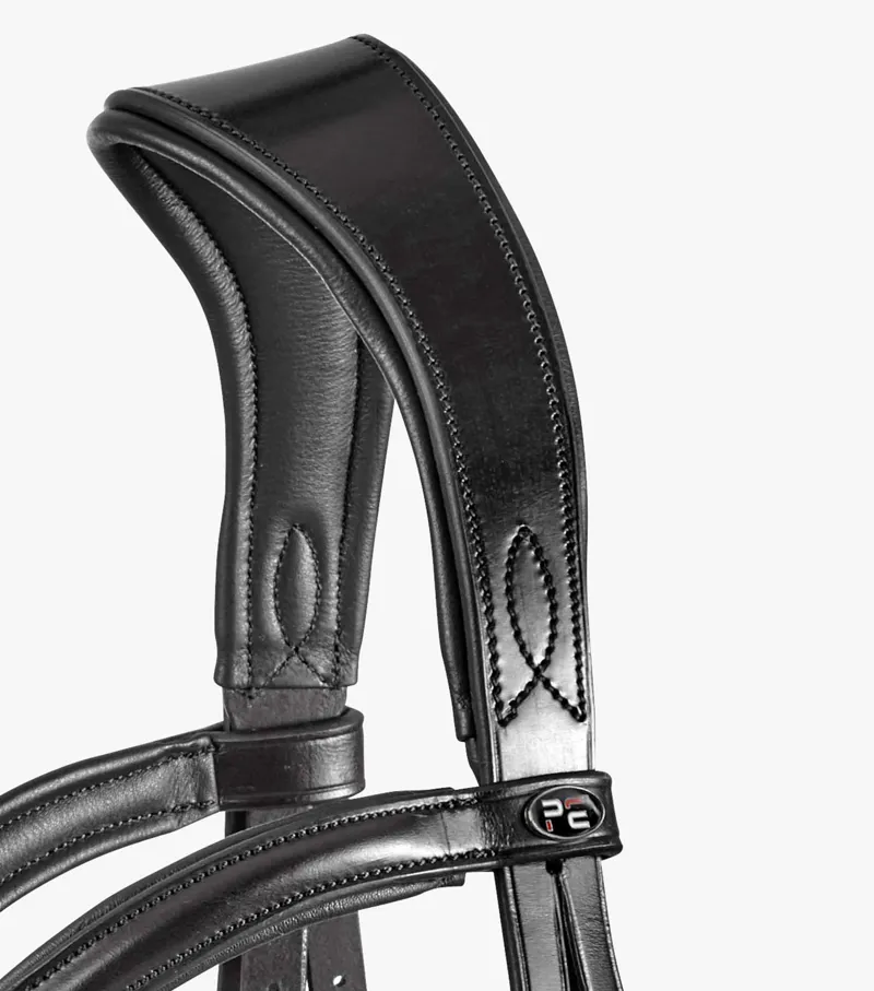 • Soft, padded and shaped browband with round raised design and ‘PE’ branded brooch either side