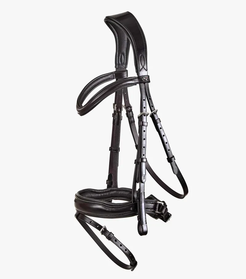 • Soft, padded and shaped browband with round raised design and ‘PE’ branded brooch either side