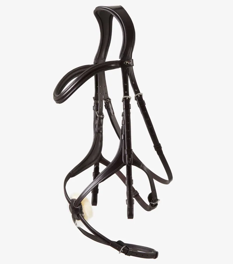 • Padded, shaped browband with round raised design and ‘PE’ branded brooch either side