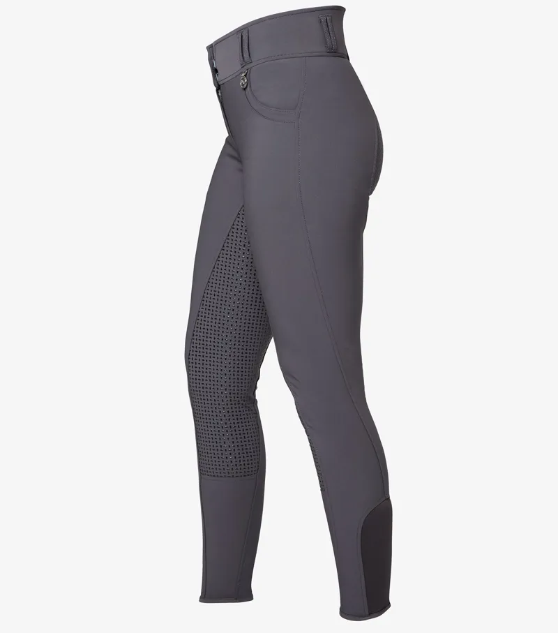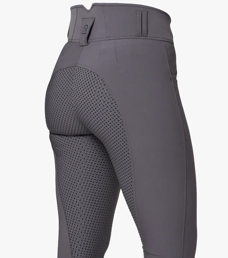 Engineered with a traditional four-way stretch fabric these ladies breeches are designed to perform, featuring an elegantly shaped high waist band which provides support to the riders core and aids in correct positioning, finished with double slider fastening for a flattening silhouette.