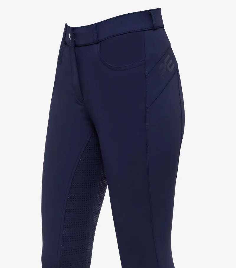 The sleek panelling provides a sculpting aesthetic with contoured lines across the rear creating a symmetrical accent to the hips. The breeches boast a full seat of lightweight gel, helping to provide additional security in the saddle – and finished with tasteful PE branding.