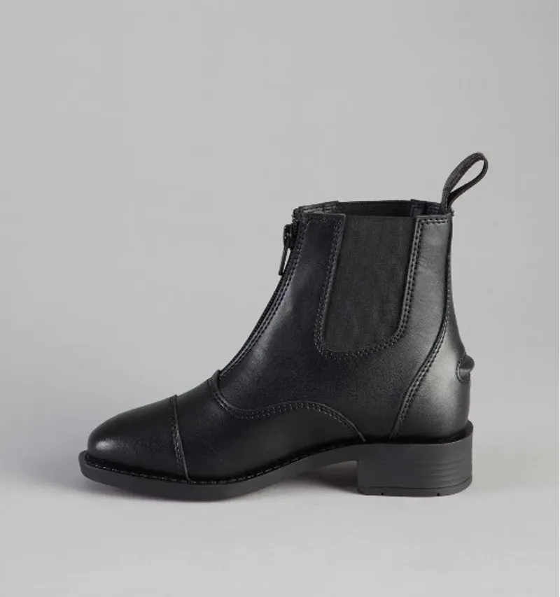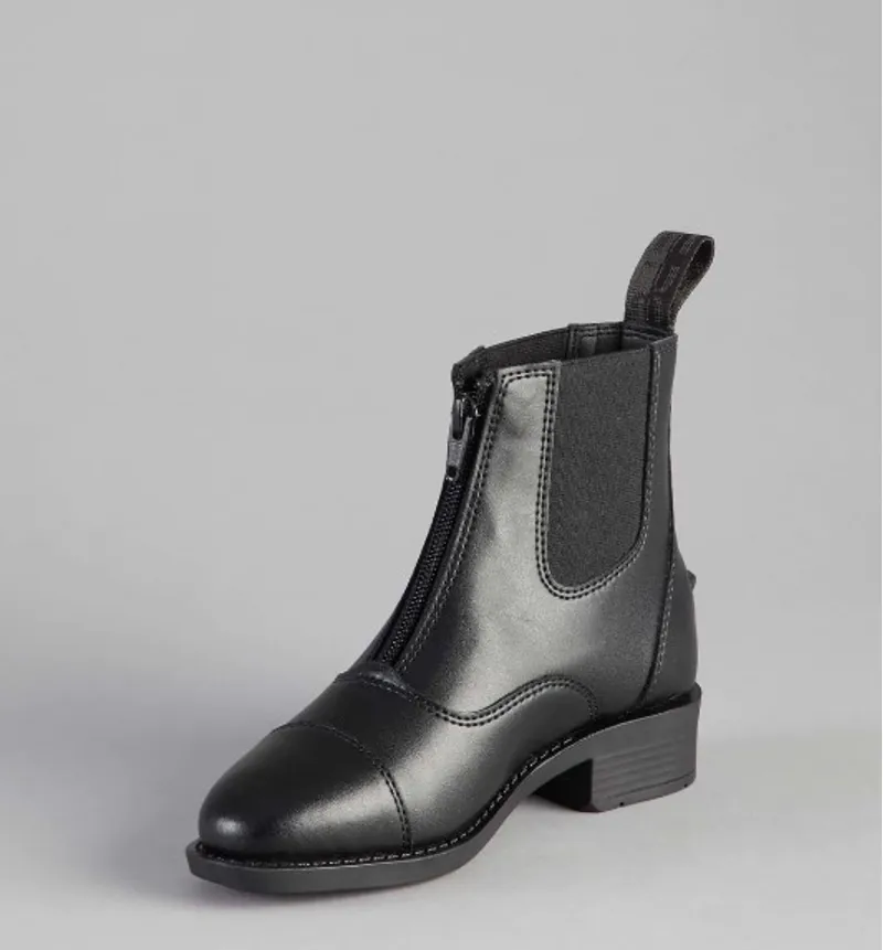 The front of the boot holds a durable YKK zip, which enhances the fit and easy removal of the boot.Elastic side panels improve comfort and flexibility around the ankle, making these synthetichorse riding boots perfect for use everyday. At the heel of the boot you will find a central spur restabove the embossed PE branding on the outside of the boots.