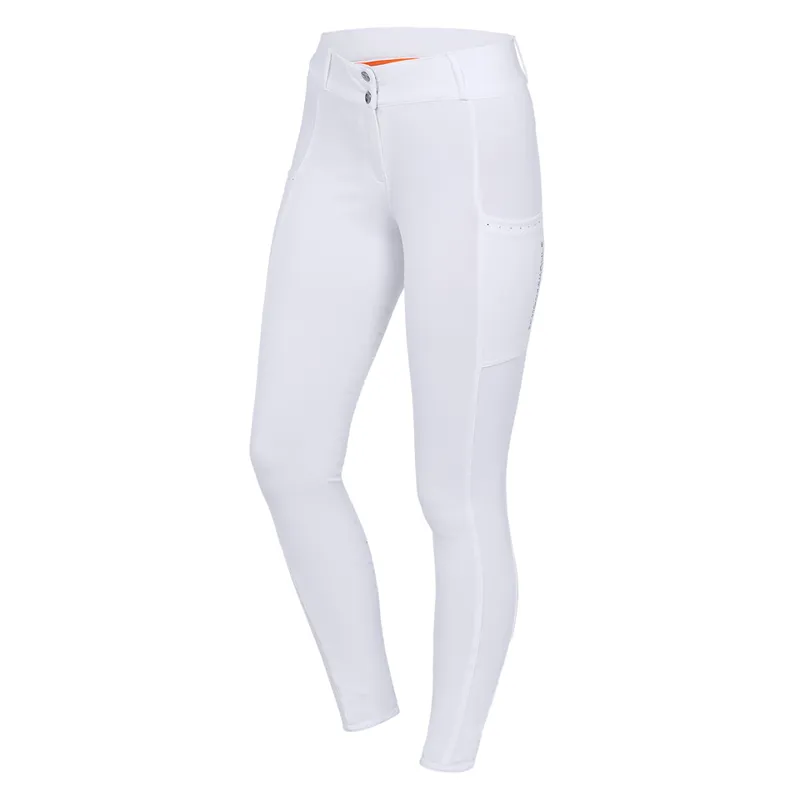 The new breeches Carla from Schockemöhle Sports is the sporty breeches forevery day! Available with full or knee grip silicone print we like atCarla the form-stable and elastic material of the breeches, which is alsoquick-drying. With the wide waistband with belt loops, the breeches fitperfectly at all times. With a logo charm on the belt loop and arhinestone motif on the left leg, the fashionable details are not missedout either.