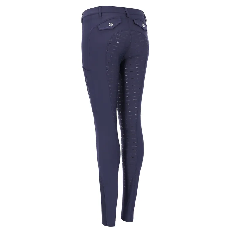 With the sporty women’s breeches Electra II FS (full seat) and Eleonore II KG (knee seat) from Schockemöhle Sports you are well prepared for every stable day. They convince with their dimensionally stable material, which (keeps the body cool and dry even in warm temperatures. Thanks to cell (phone pockets on the sides as well as push pockets and a small zipper (pocket on the right, you can safely store your smartphone and important (belongings. The flap pockets with two buttons in the back fitting seam (round off the design of the sporty women’s breeches.