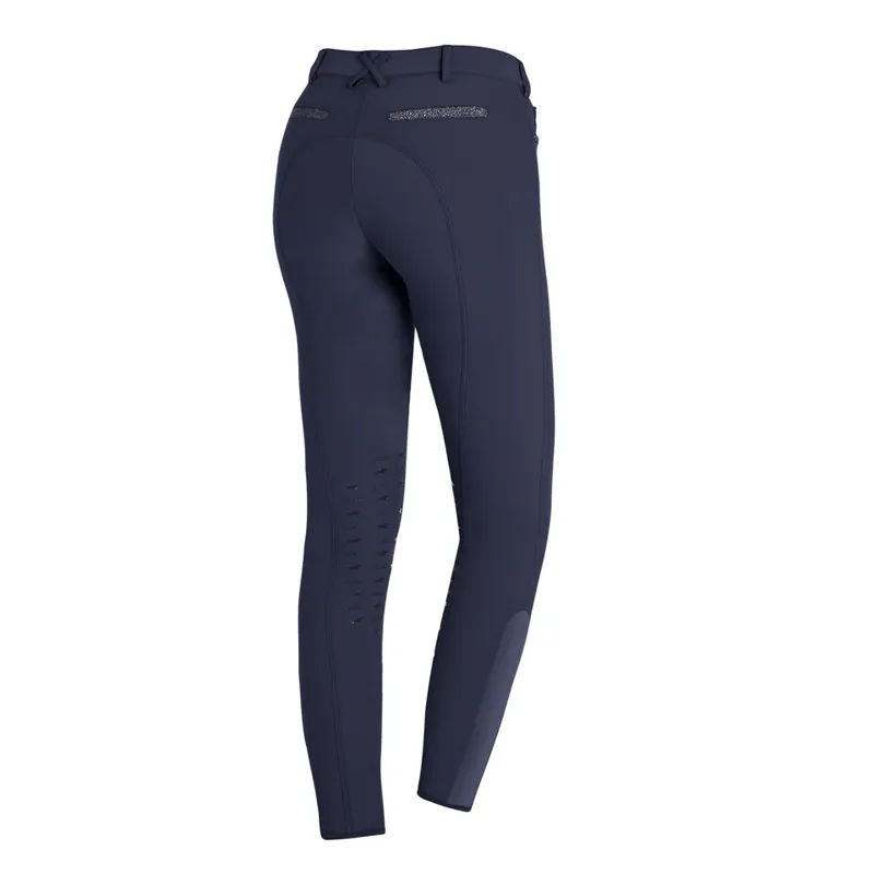 Breathable, flexable and nevertheless stable in form: the ladies breechesLivia KG by Schockemöhle Sports convinces with maximum functionality. Thestretch fabric is moisture wicking and offers UV protection. Also useful:the round pockets with an additional small coin pocket. The Knee gripensures good support in the saddle. A rhinestone logo on the left leg andfake pockets decorated with a glitter tape at the back let sporty ridersshine!